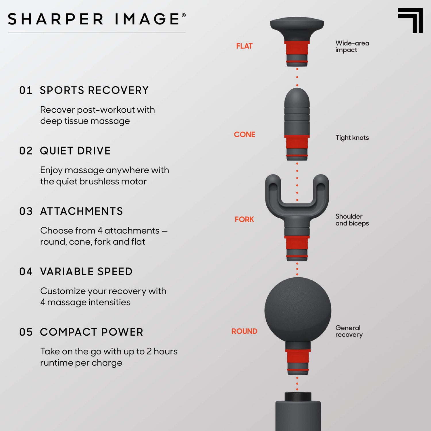 DEEP TISSUE MASSAGE: Let the Sharper Image® PowerBoost Move™ be your sports recovery sidekick! It targets sore muscles and relieves tension with deep-tissue percussion for effective relief.